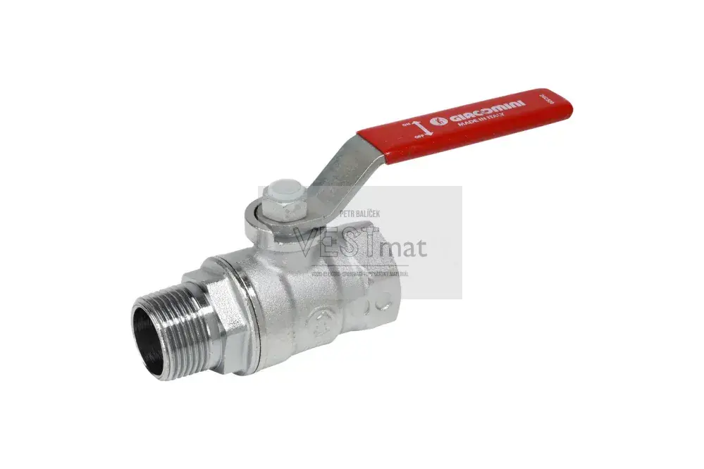 - Giacomini - Kulový kohout 1 1/4" s ovládací páčkou - červená, vnější x vnitřní závit, chromovaný