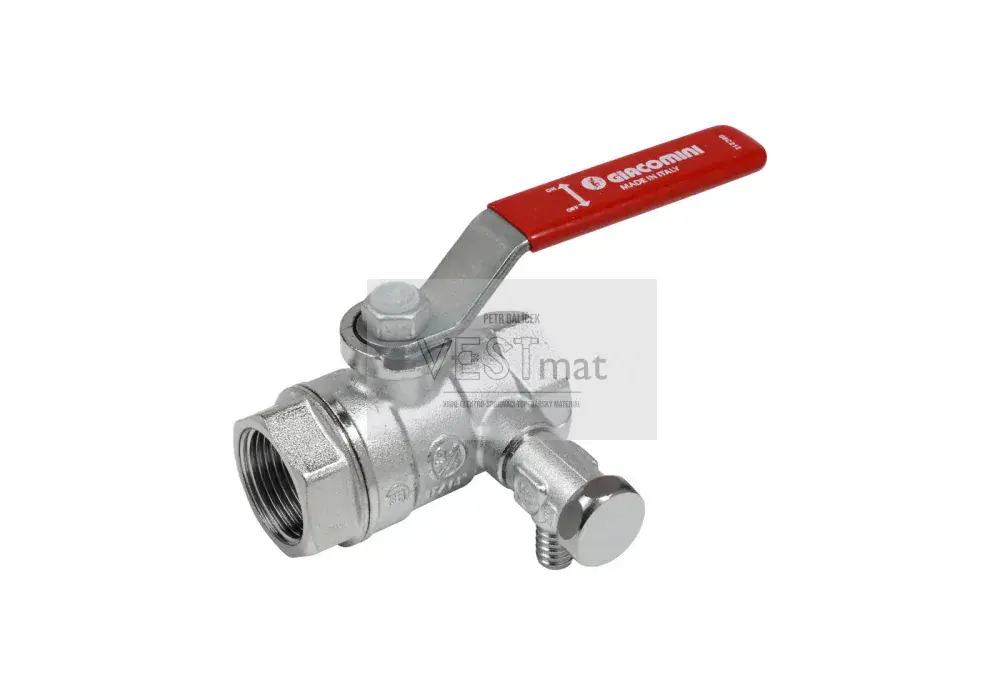 - Giacomini - Kulový kohout 1/2" s vnitřními závity, vypouštěním a ovládací páčkou - červená, chromovaný