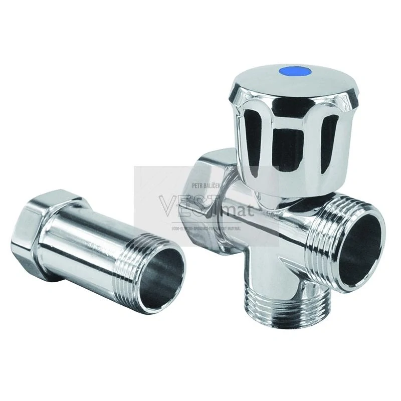 Meziventil s mezikusem a otočnou maticí z kvalitní chromované mosazi.Slouží k připojení pračky nebo myčky.
