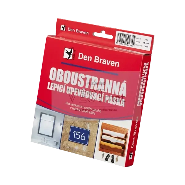 Pro mnohostranné upevňovací práce v domácnosti i v profi sféře. Ideální pro upevňování výstražných a informativních cedulí a dekorativních předmětů. Okamžité upevňování firemních tabulí na prezentacích, výstavách a veletrzích. Fixace lepených předmětů při montážích jako lepení zrcadlových stěn, menších zrcadel do skříní a koupelen apod. Vysokou lepivost a přilnavost k podkladu obstarává speciální oboustranný nános kaučukového lepidla na pěnové PE pásce. Hobby balení v krabičce.