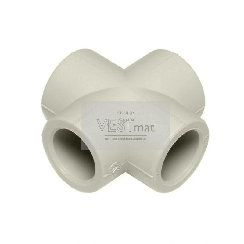 PPR Kříž rovnostranný PN20. Charakteristika: plastový potrubní systém pro vnitřní rozvody studené a teplé vody, pro podlahové a ústřední vytápění, rozvody vzduchu, eventuelně jiné použití v průmyslu a zemědělství. Výhody: hygienická nezávadnost nekoroduje a nezarůstá mimořádně dlouhá životnost při zachování vysoké užitné hodnoty bezproblémový a méně hlučný provoz nižší ztráty třením než u tradičních materiálů menší hmotnost než u tradičních materiálů rychlá, snadná a čistá montáž odolnost agresivnímu prostředí (např. potrubí v zemědělství) Ekologické hledisko: Plně recyklovatelný výrobek. Při výrobě ani při aplikaci se nepoužívají toxické ani jinak škodlivé látky. Tvarovky celoplastové (shodně pro všechny tlakové řady v PN 20) kombinované (plast + poniklovaná mosaz - PN 20).