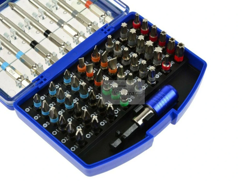 Praktická 56-dílná sada bitů z kvalitní CrV oceli v přehlednám plastovém kufříku.