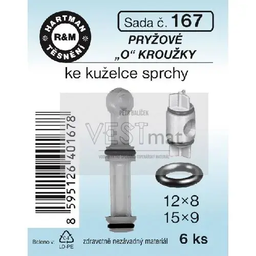 - Sada O kroužků 12 x 8 mm a 15 x 9 mm ke kuželce sprchy, pryž