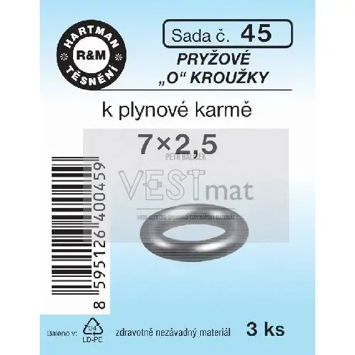 - Sada O kroužků 7 x 2,5 mm k plynové karmě, pryž