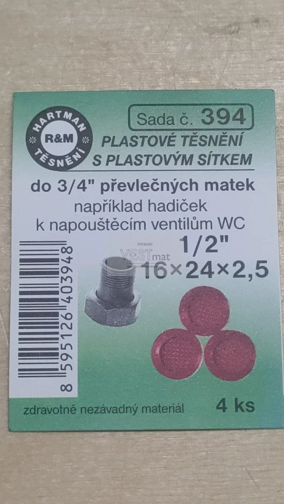 Sada plastové těsnění s plastovým sítkem do 3/4" převlečných matekSkladem 3 ks39,00 Kč/ ks32,23 Kč bez DPH