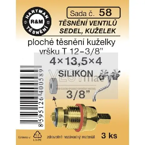 - Sada těsnění 3/8" 4 x 13,5 x 4 mm SAM ke kuželkám vršků T12 3/8",T12 a T14 1/2", silikon