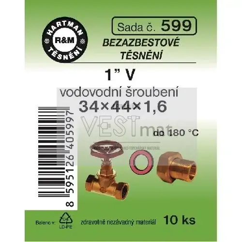 - Sada těsnění bezazbestové 1" V 34 x 44 x 1,6 mm k vodovodnímu holandskému šroubení, do šroubení k čerpadlům