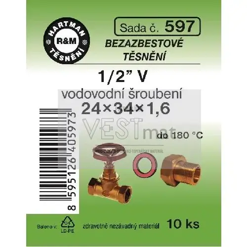 - Sada těsnění bezazbestové 1/2" V 24 x 34 x 1,6 mm k vodovodnímu holandskému šroubení
