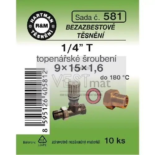 - Sada těsnění bezazbestové 1/4" T 9 x 15 x 1,6 mm k topenářskému radiátorovému šroubení