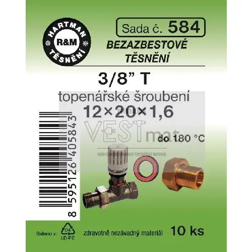 - Sada těsnění bezazbestové 3/8" T 12 x 20 x 1,6 mm k topenářskému radiátorovému šroubení