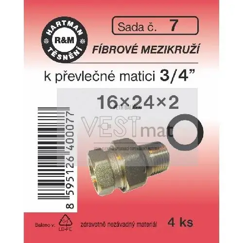 - Sada těsnění fíbrové 3/4" 16 x 24 x 2 mm k převlečné matici k vodoměrům