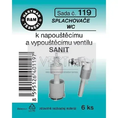 - Sada těsnění k napouštěcímu a vypouštěcímu ventilu SANIT, pryž