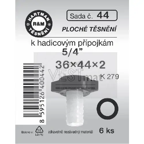 - Sada těsnění k přípojkám, 36 x 44 x 2, pryžové, 6 ks, č. 44
