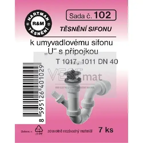 Sada těsnění k umyvadlovému sifonu U s přípojkou T 1017, 1011, DN 40, pryžSkladem 12 sada72,00 Kč/ sada59,50 Kč bez DPH
