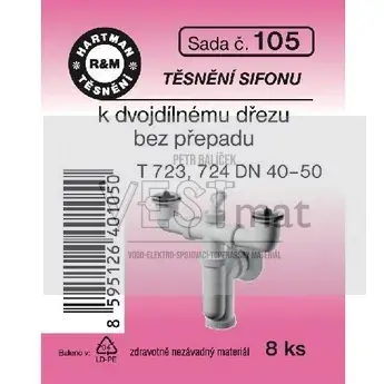 - TSN105, Sada tesneni k sifonu dvojdilneho drezu bez prepatu T723, 724, DN40/50, pryz