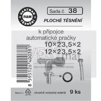 - Sada těsnění 10 x 23,5 x 2 mm, 12 x 23,5 x 2 mm k připojovacím hadičkám k pračce