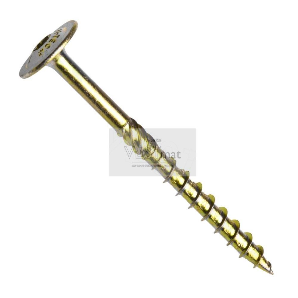 - Vrut konstrukční, talířová hlava, TORX 25, frézovací segment, špička se zářezem, částečný závit, ocel, zinek žlutý, 5x50 mm