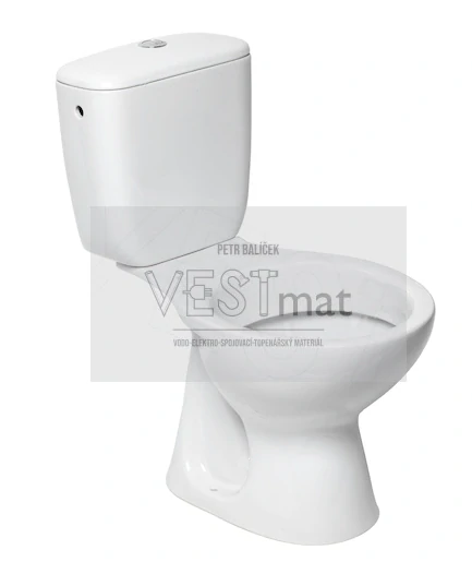 WC kombi stojící S-Line Pro bílé barvy má svislý odpad a přívod vody z obou boků nádrže s duální funkcí splachování 3/6l. Sedátko je potřeba objednat samostatně.