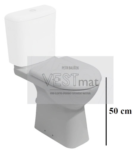 WC mísa kombi s hlubokým splachováním a spodním odpadem. Zvýšená výška 50 cm. WC nádrž a WC sedátko není součástí výrobku.